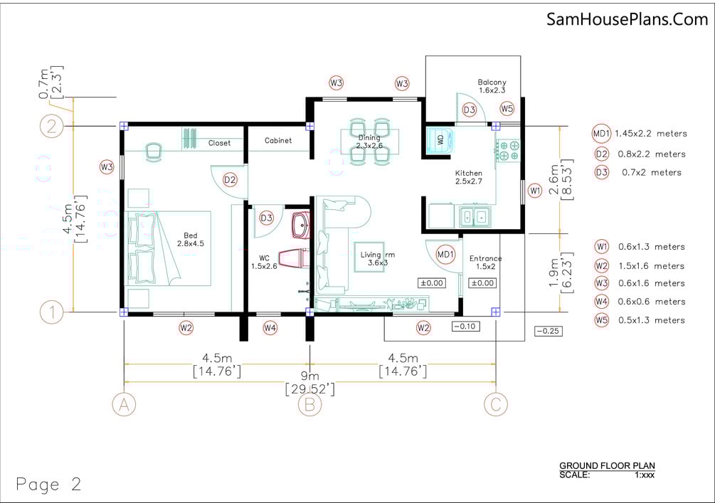 15x30 Small House Plan One Bedroom PDF Plan 4.5x9 Meter. House Plan with 40.5 sqm floor area PDF Plans. This house is perfect for small land size.