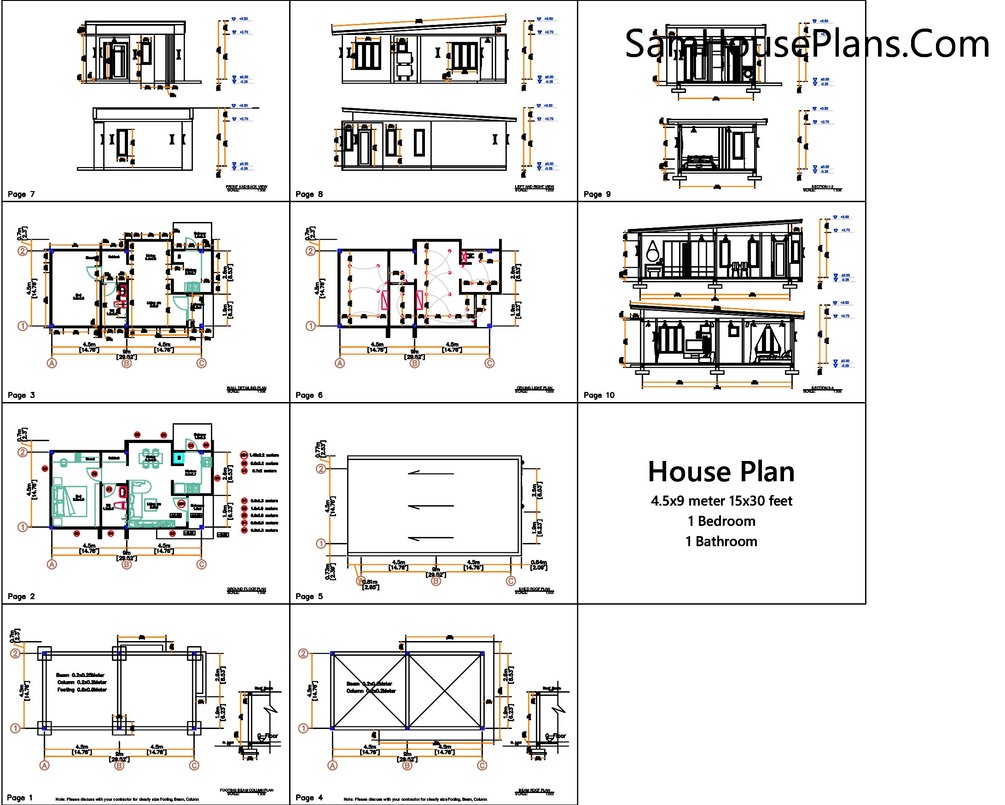 15x30 Small House Plan One Bedroom PDF Plan 4.5x9 Meter