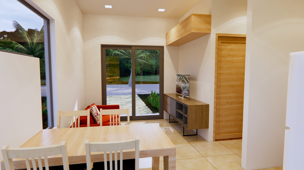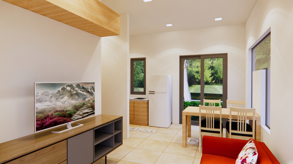 Finally, The Terrace roof type is made from Cement concreate that cover above Gypsum board ceiling . It is make the house look simple and modern.