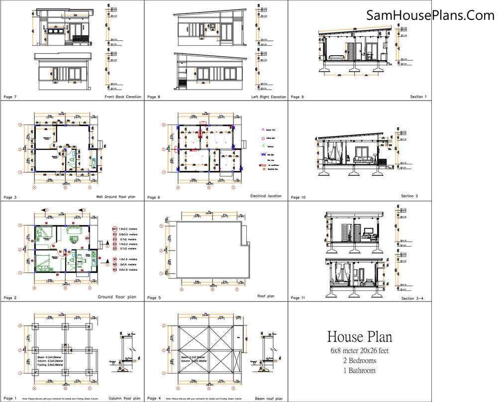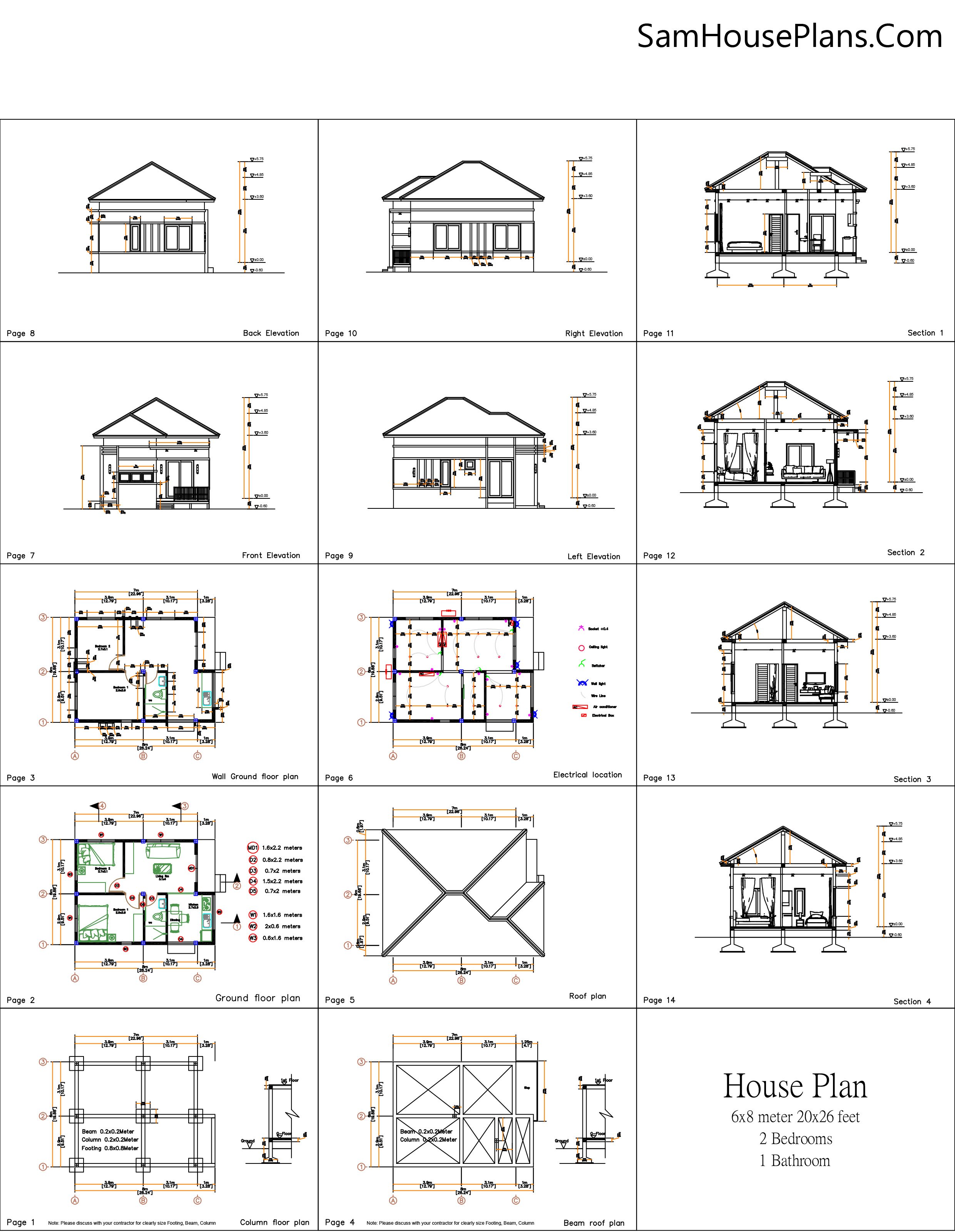 20x26 Small House Plan 6x8 Meter 2 Beds Pdf Full Plan. This house is perfect for small family.