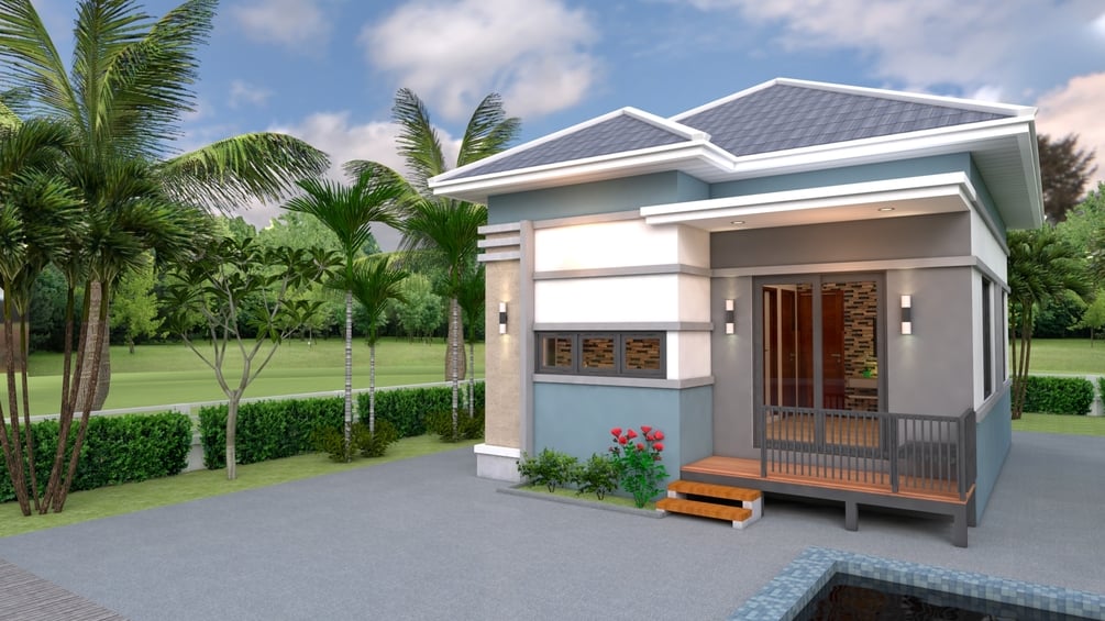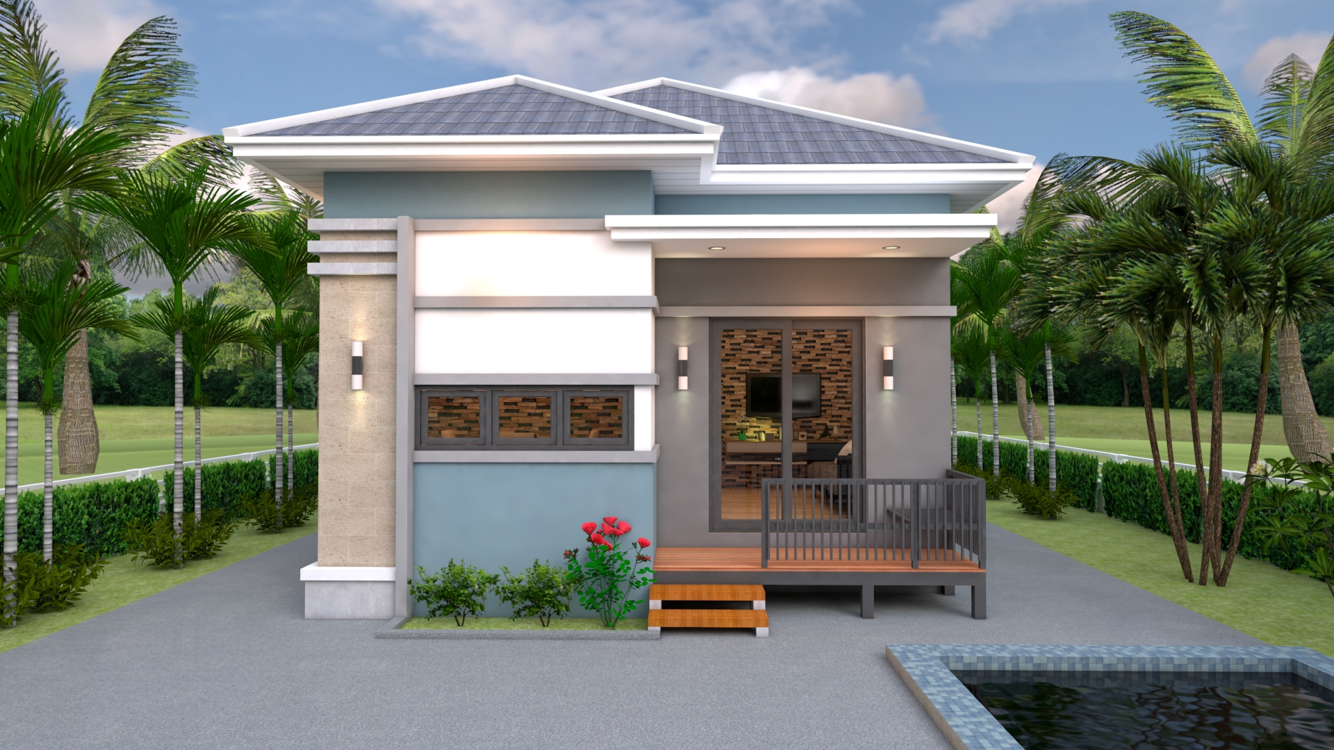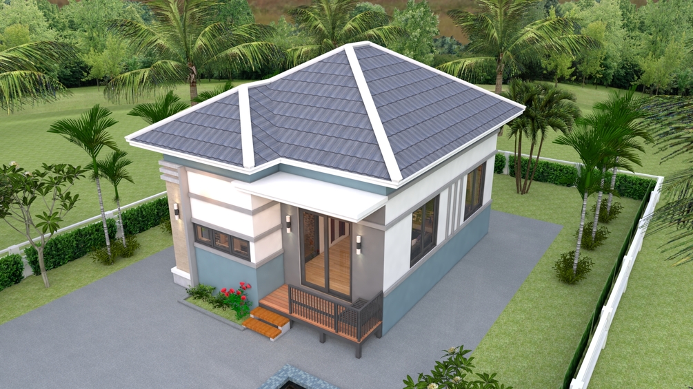 Finally, The Hip roof type is made from Cement tile that cover above Gypsum board ceiling . It is make the house look simple and modern.