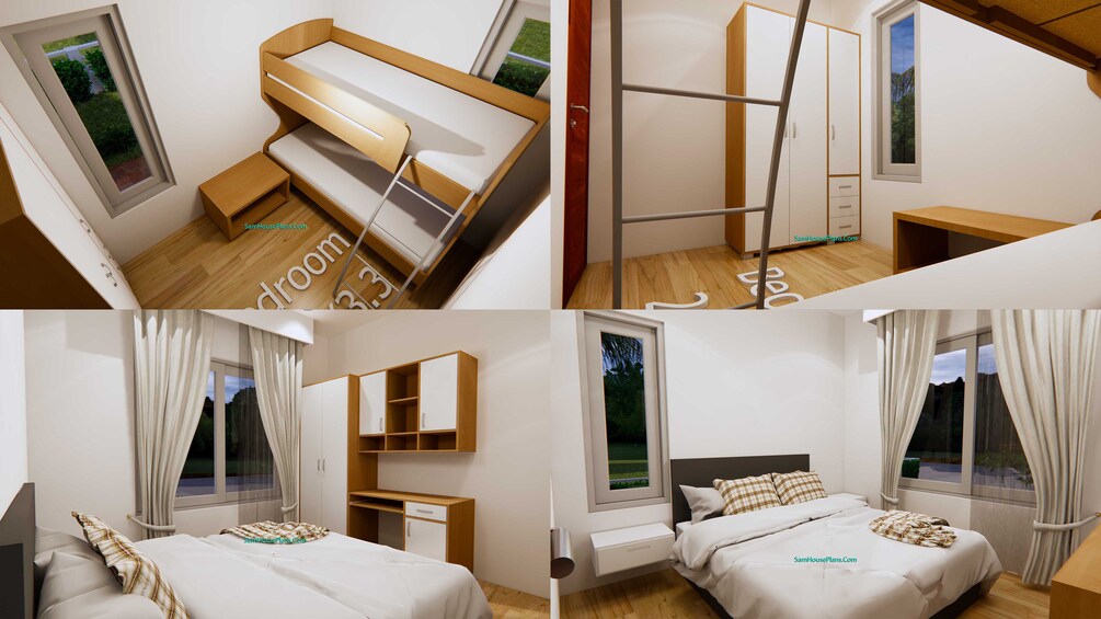 The Bedroom 1 size is 3.00 x 3.30 meters with a queen size bed and big closet. Bedroom 2 is kid room 2.20 x 3.30 meters with bunk bed support two kid, also have closet in front of the door.