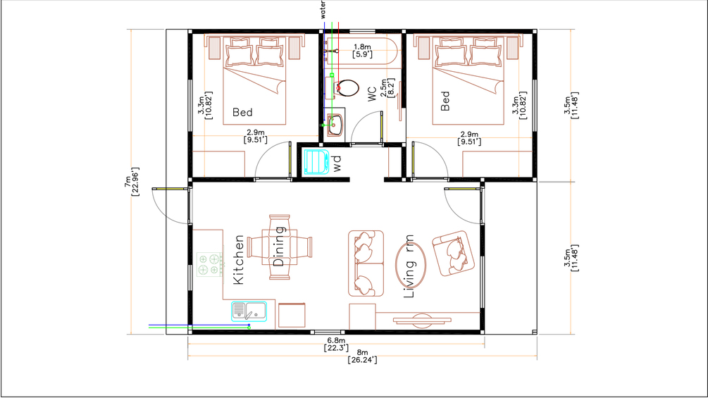 24x26 Small House Floor Plans 7x8 Meter 2 Bedrooms Full Plans