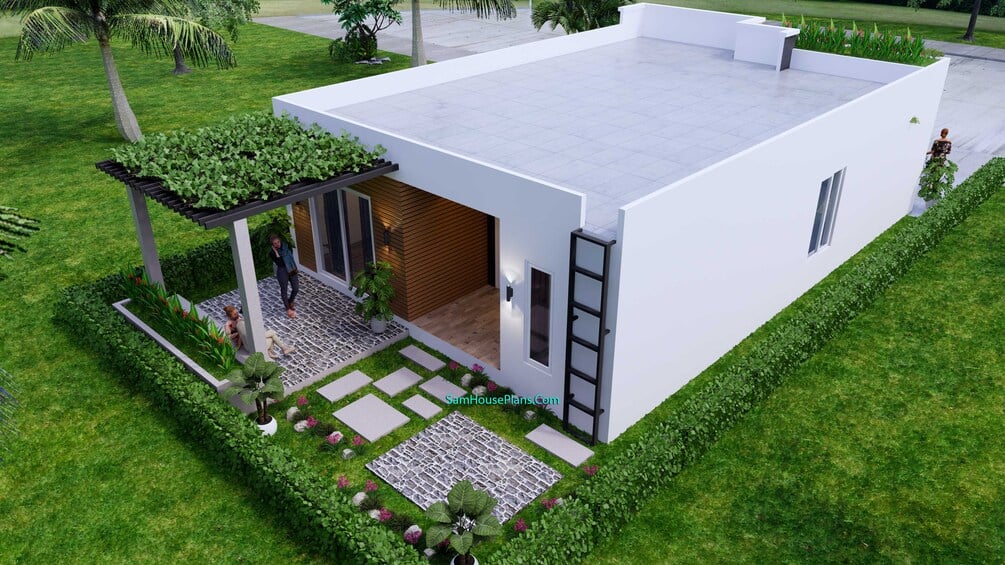 Finally, The terrace roof type is made from Cement concrete that cover above Gypsum board ceiling . It is make the house look simple and modern.