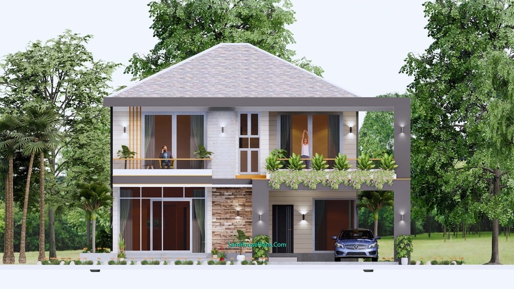 Similarly, to the roof border color we choose a bite dark and light color combination together with a big glass door and window to get the house look so beautiful and Modern house.