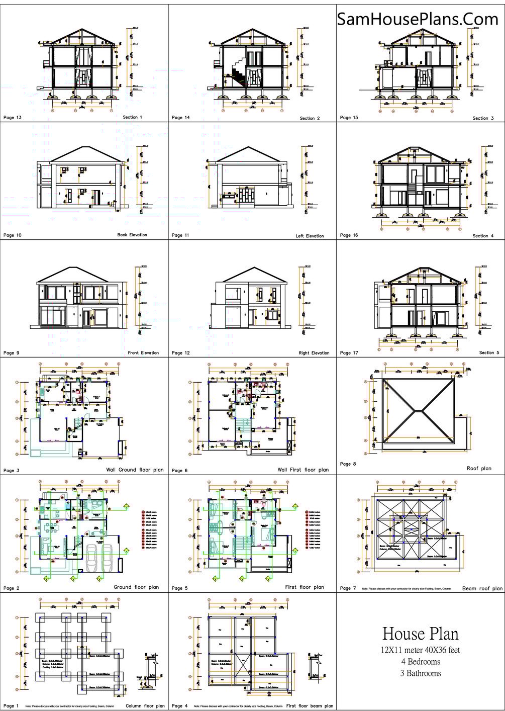 40x36 feet House design plans 12x11 m with 4 Bedrooms Pdf Full Plan