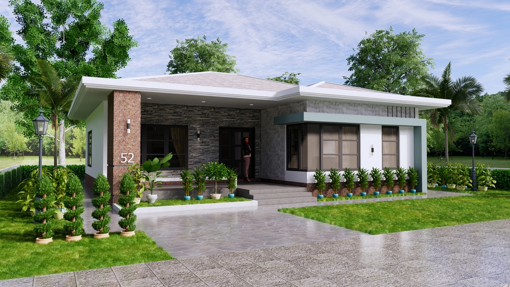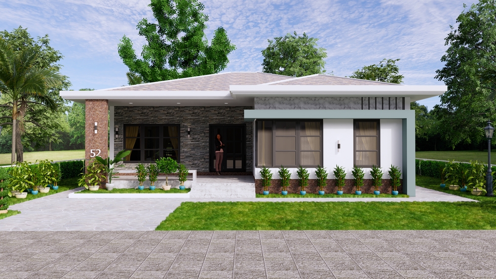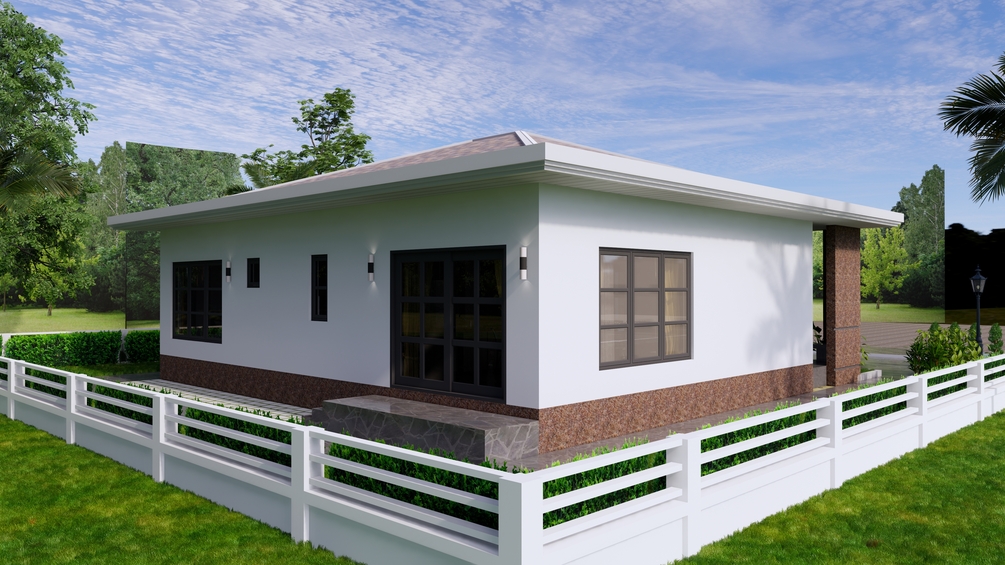 Finally, The hip roof type is made from Cement tile or other material that cover above Gypsum board ceiling . It is make the house look simple and modern.