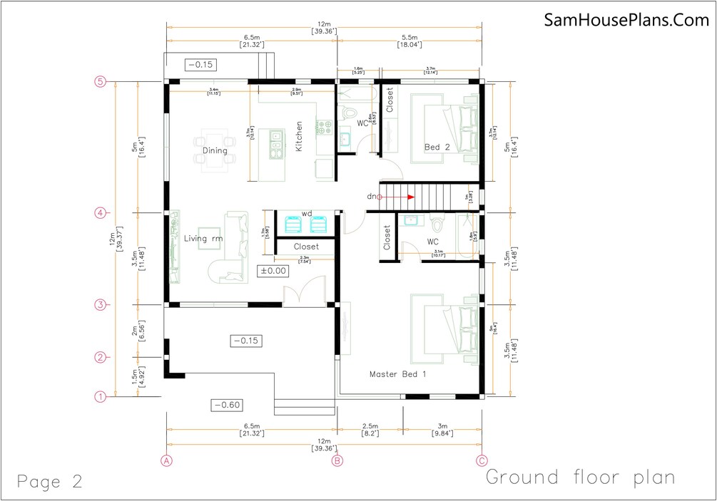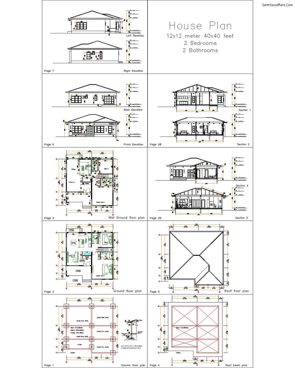 40x40 House Design Plans 12x12 Meter 2 Bedrooms Full PDF Plans
