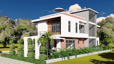 Similarly, to the roof border color we choose a bite dark and light color combination together with a big glass door and window to get the house look so beautiful and Modern house.