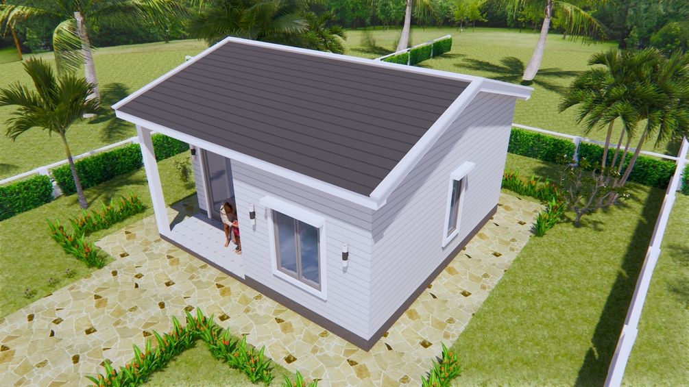 One Bedroom House Plans 21x21 Feet 6.5x6.5m Gable Roof