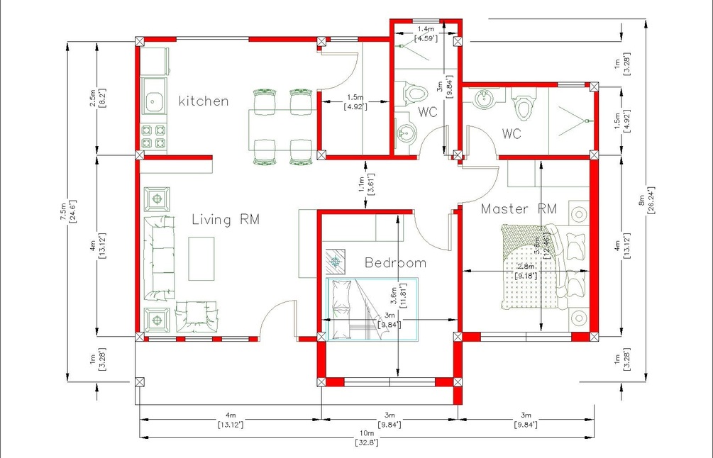 Single Story House 10x8 Meter 33x26 Feet